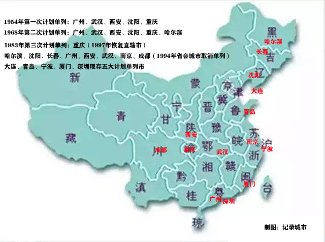 第一次设立计划单列共有5个城市